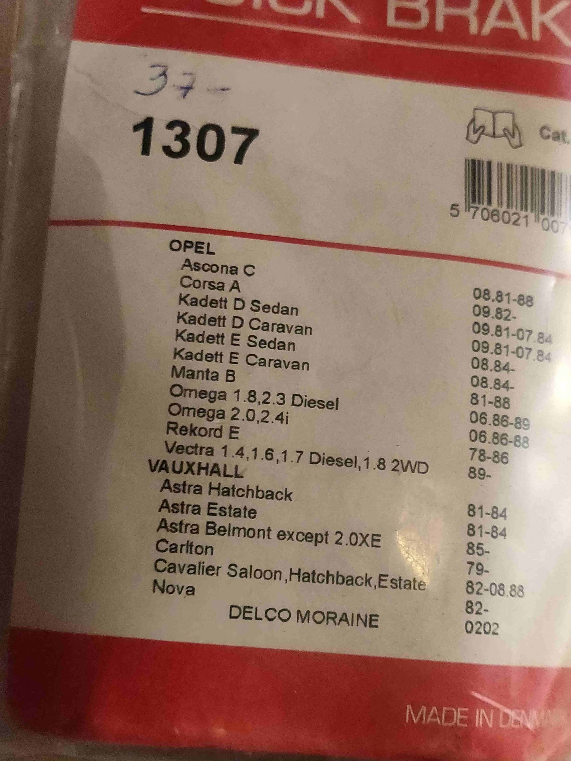 Jarrupalojen asennussarja 1307 Opel, Kadett, Ascona, Corsa, Omega, Manta, Vectra, Vauxhall, Astra, Carlton, Cavalier Nova.