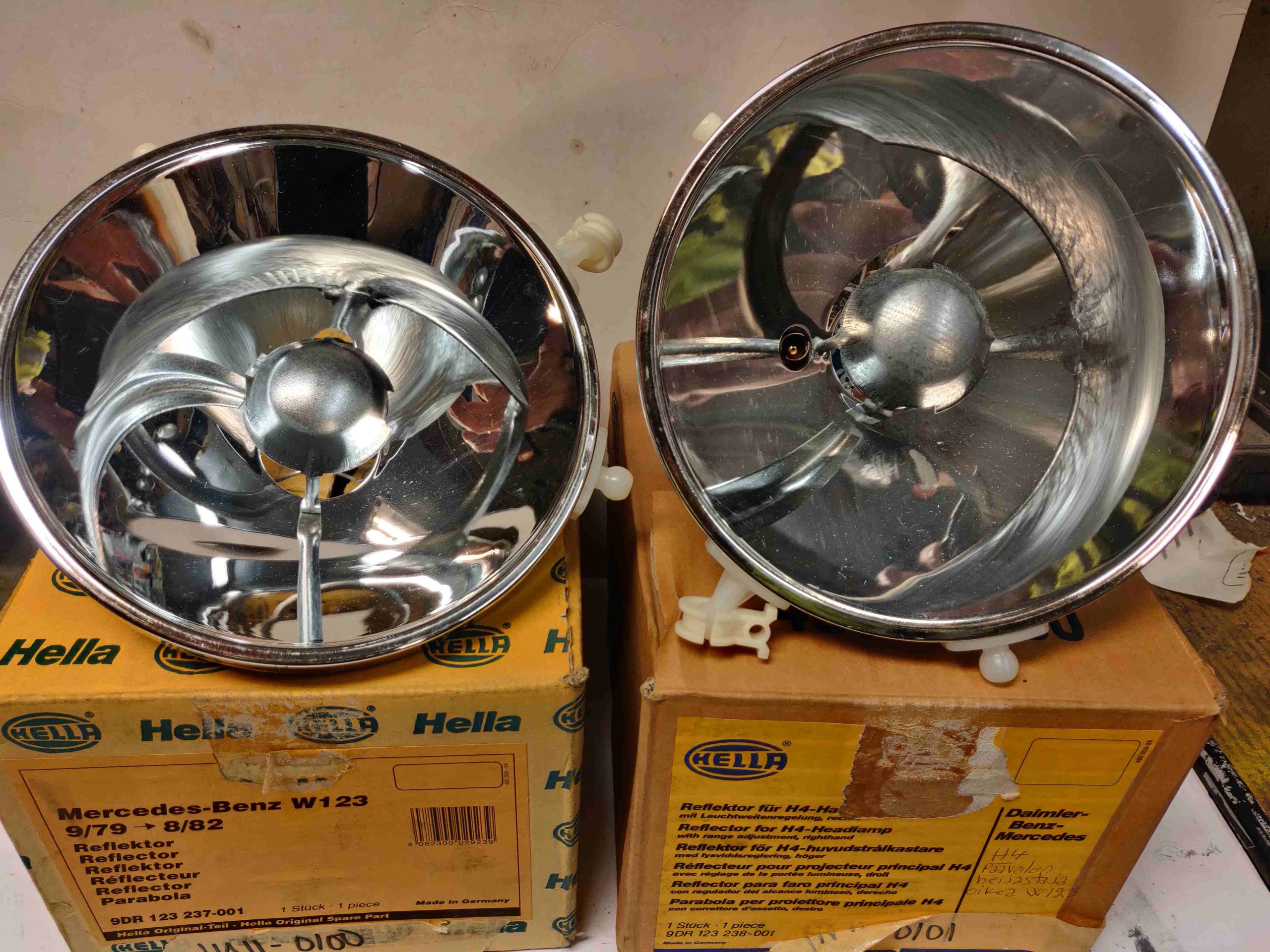 Mercedes Benz W123 Päävalon heijastin Hella sopii vm 1979-1982 ( Yksi Pari ) kpl hinta 50 e