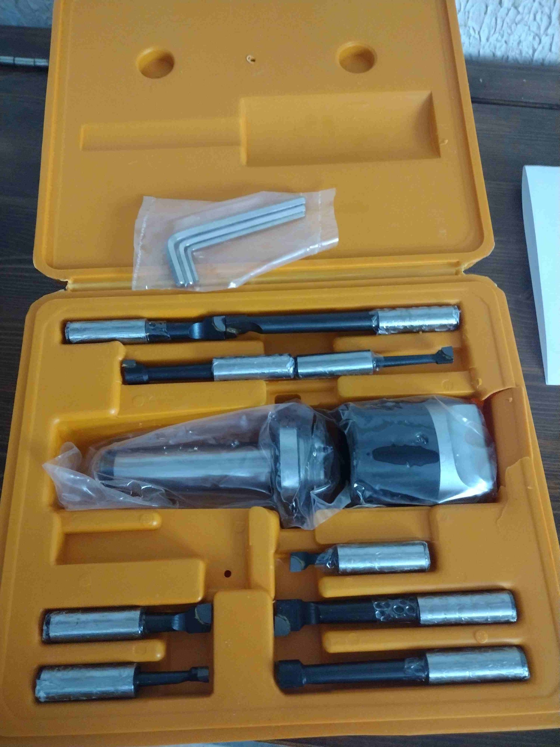 Poratyökalusarja, mukana tulee, Porauspää 40 Cr teräs, tarkkuus 0.01. porauskapasiteetti 10-125mm, porausreiän halkaisija 12mm, vetotangon kierre  M12, varren malli MT3, TOIMITUS SISÄLTÄÄ, 1X porausvarsi, 1X porauspää, 1X Porausleikkuri, 3X kuusiokoloavain, 1X säilytyslaatikko.